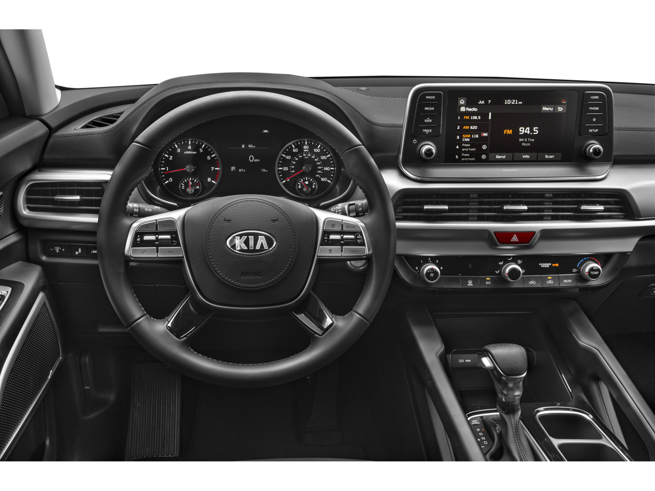 - Radio: AM/FM/MP3/SiriusXM Audio System -inc: UVO link infotainment system, w/smartphone integration for remote commands and remote vehicle status, 6-speaker, support for Android Auto and Apple CarPlay, 8" touch-screen color display, a total of 5 USB charge ports in all rows and Bluetooth® wireless connectivity w/voice recognition (a Bluetooth® enabled cell phone is required to use Bluetooth® wireless technology), Note: Remote's climate feature is not available on LX and S trim levels due to manual HVAC system