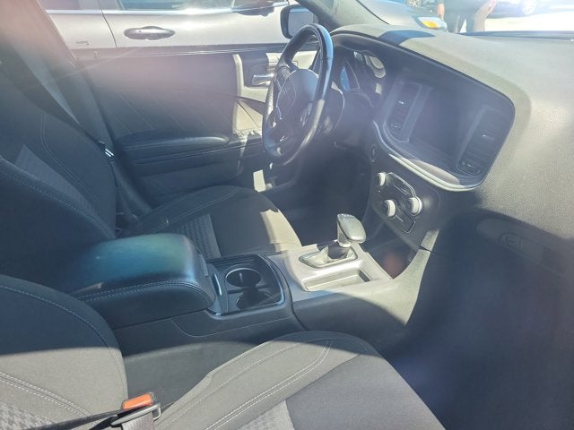 This vehicle comes equipped with: Blacktop Package (Black 1-Piece Performance Spoiler, Dodge Grille Badge, Gloss Black Fascia Applique, Gloss Black I/P Cluster Trim Rings, Satin Black Charger Decklid Badge, and Satin Black Dodge Tail Lamp Badge), Cold Weather Package (Exterior Mirrors w/Heating Element, Heated Front Seats, Heated Steering Wheel, and Power Heated Mirrors w/Man F/Away), Quick Order Package 2EG, Black Cloth, 4-Wheel Disc Brakes, 6 Speakers, ABS brakes, Air Conditioning, Alloy wheels, AM/FM radio: SiriusXM, Anti-whiplash front head restraints, Apple CarPlay/Android Auto, Brake assist, Bumpers: body-color, Cloth Sport Seat, Compass, Delay-off headlights, Driver door bin, Driver vanity mirror, Dual front impact airbags, Dual front side impact airbags, Electronic Stability Control, Four wheel independent suspension, Front anti-roll bar, Front Bucket Seats, Front Center Armrest, Front dual zone A/C, Front reading lights, Fully automatic headlights, Illuminated entry, Knee airbag, Leather Shift Knob, Low tire pressure warning, Occupant sensing airbag, Outside temperature display, Overhead airbag, Overhead console, Panic alarm, ParkView Rear Back-Up Camera, Passenger door bin, Passenger vanity mirror, Power 8-Way Driver Seat, Power door mirrors, Power driver seat, Power steering, Power windows, Radio: Uconnect 4 w/7" Display, Rear anti-roll bar, Rear Armrest w/Cupholder Seat, Rear reading lights, Rear seat center armrest, Rear window defroster, Remote keyless entry, Speed control, Speed-Sensitive Wipers, Split folding rear seat, Steering wheel mounted audio controls, Tachometer, Telescoping steering wheel, Tilt steering wheel, Traction control, Trip computer, Variably intermittent wipers, Wheels: 17" x 7.0" Painted Cast Aluminum, and Wheels: 20" x 8.0" Black Noise Painted .