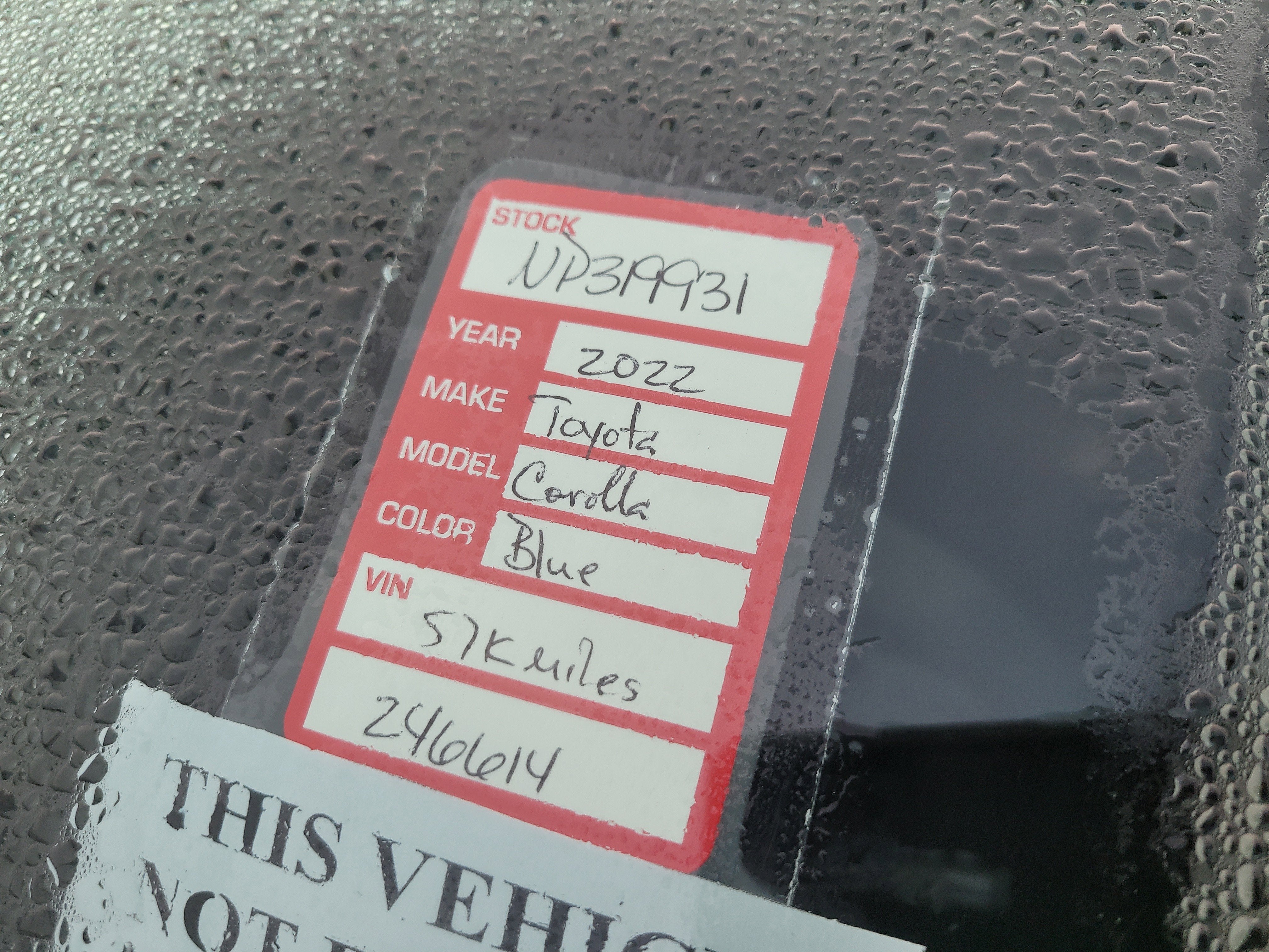 - Vehicle Name: Toyota Corolla
