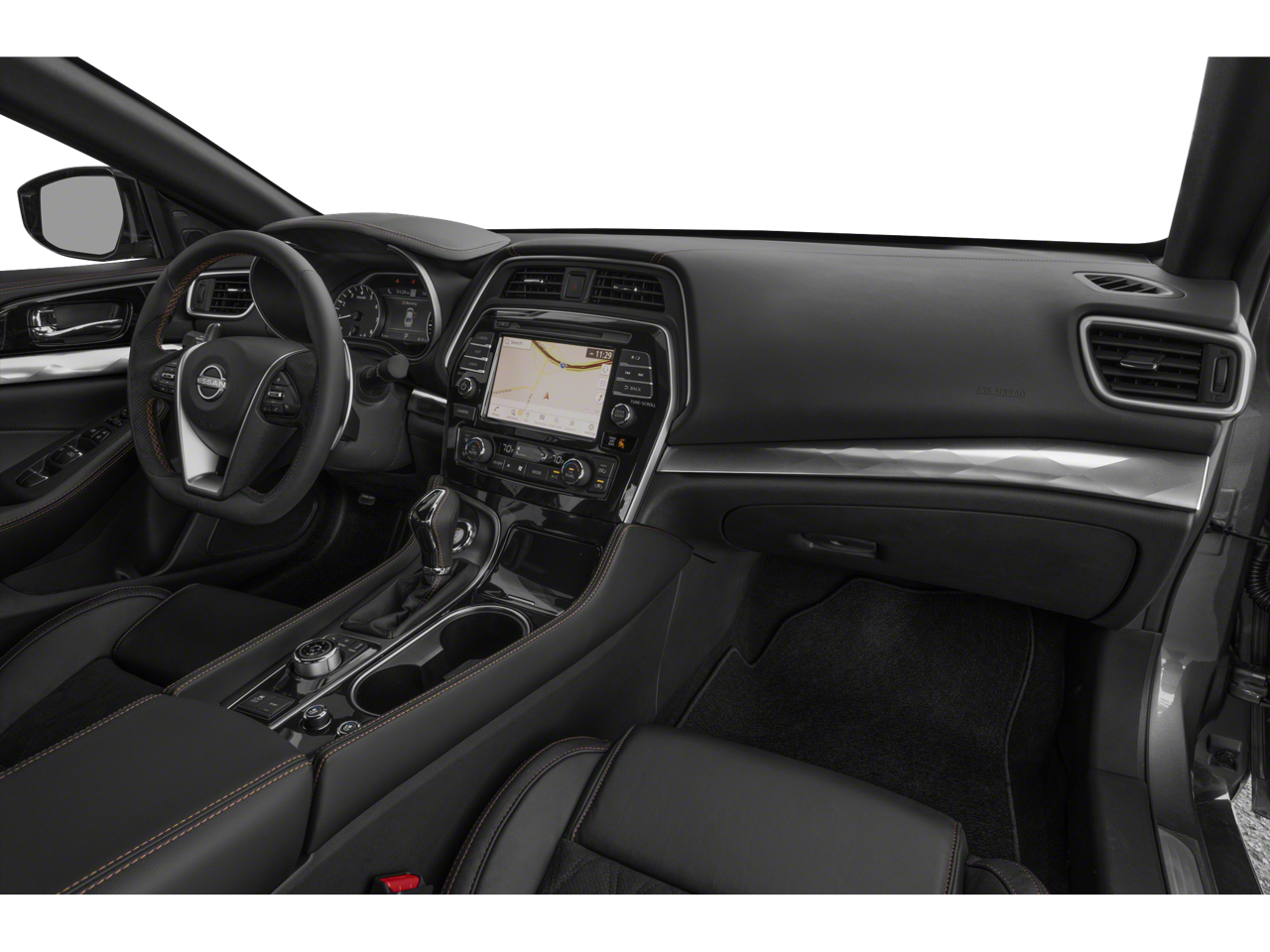 This vehicle comes equipped with : 11 Speakers, 4-Wheel Disc Brakes, ABS brakes, Air Conditioning, Alloy wheels, AM/FM radio: SiriusXM, Auto High-beam Headlights, Auto-dimming door mirrors, Auto-dimming Rear-View mirror, Automatic temperature control, Bag Hooks, Black Sport Spoiler, Blind Spot Warning, Body-Colored Splash Guards, Brake assist, Bumpers: body-color, CD player, Compass, Delay-off headlights, Driver door bin, Driver vanity mirror, Dual front impact airbags, Dual front side impact airbags, Electronic Stability Control, Emergency communication system: NissanConnect Services, Exterior Parking Camera Rear, First Aid Kit, Four wheel independent suspension, Front anti-roll bar, Front Bucket Seats, Front Center Armrest, Front dual zone A/C, Front fog lights, Front reading lights, Front Zero Gravity Climate-Controlled Seats, Fully automatic headlights, Garage door transmitter: HomeLink, Heated door mirrors, Heated front seats, Heated steering wheel, Illuminated entry, Knee airbag, Low tire pressure warning, Memory seat, Navigation system: Nissan Door to Door Connected Navigation, NissanConnect featuring Apple CarPlay and Android Auto, Occupant sensing airbag, Outside temperature display, Overhead airbag, Overhead console, Panic alarm, Passenger door bin, Passenger vanity mirror, Power door mirrors, Power driver seat, Power moonroof, Power passenger seat, Power steering, Power windows, Premium Ascot Leather-Appointed Seat Trim, Radio data system, Radio: AM/FM/CD Bose Audio System, Rear anti-roll bar, Rear reading lights, Rear seat center armrest, Rear side impact airbag, Rear window defroster, Remote keyless entry, Security system, Sliding Trunk Organizer Tray, Speed control, Speed-sensing steering, Speed-Sensitive Wipers, Split folding rear seat, Spoiler, Sport Floor Mats, Sport steering wheel, Steering wheel mounted audio controls, Tachometer, Telescoping steering wheel, Tilt steering wheel, Traction control, Trip computer, Trunk Mat, Trunk Net, Turn signal indicator mirrors, Variably intermittent wipers, Ventilated front seats, and Wheels: 19" Gloss Black Alloy w/Center Caps.