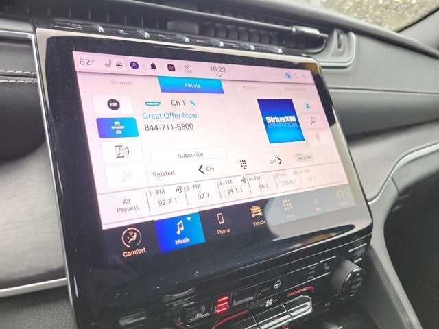 This Vehicle is nicely equipped with the following features: Quick Order Package 23E, 4WD, 3.45 Rear Axle Ratio, 4-Wheel Disc Brakes, 6 Speakers, ABS brakes, Active Noise Control System, Air Conditioning, Alloy wheels, AM/FM radio: SiriusXM with 360L, Anti-whiplash front head restraints, Audio memory, Auto High-beam Headlights, Automatic temperature control, Brake assist, Bumpers: body-color, Capri Leatherette Seats, Compass, Delay-off headlights, Driver door bin, Driver vanity mirror, Dual front impact airbags, Dual front side impact airbags, Electronic Stability Control, Emergency communication system, Four wheel independent suspension, Front anti-roll bar, Front Bucket Seats, Front Center Armrest w/Storage, Front dual zone A/C, Front fog lights, Front License Plate Bracket, Front reading lights, Fully automatic headlights, Garage door transmitter, Heated door mirrors, Heated front seats, Heated rear seats, Heated steering wheel, Illuminated entry, Knee airbag, Low tire pressure warning, Memory seat, Navigation System, Normal Duty Suspension, Occupant sensing airbag, Outside temperature display, Overhead airbag, Overhead console, Panic alarm, ParkView Rear Back-Up Camera, Passenger door bin, Passenger vanity mirror, Power door mirrors, Power driver seat, Power Liftgate, Power passenger seat, Power steering, Power windows, Radio data system, Radio: Uconnect 5 Nav w/10.1" Display, Rear anti-roll bar, Rear reading lights, Rear window defroster, Rear window wiper, Remote keyless entry, Security system, Speed control, Speed-Sensitive Wipers, Split folding rear seat, Spoiler, Steering wheel mounted audio controls, Tachometer, Telescoping steering wheel, Tilt steering wheel, Traction control, Trip computer, Turn signal indicator mirrors, Variably intermittent wipers, Voltmeter, and Wheels: 18" x 8" Polished/Painted Aluminum. 19/26 City/Highway MPG