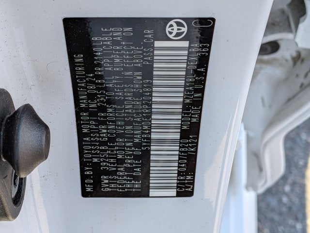 This vehicle comes equipped with : 16" Steel Wheels w/Covers, 4-Wheel Disc Brakes, 6 Speakers, ABS brakes, Air Conditioning, AM/FM radio: SiriusXM, Auto High-beam Headlights, Automatic temperature control, Brake assist, Bumpers: body-color, Delay-off headlights, Driver door bin, Driver vanity mirror, Dual front impact airbags, Dual front side impact airbags, Electronic Stability Control, Emergency communication system: Safety Connect (up to 10-year trial subscription), Exterior Parking Camera Rear, Fabric Seat Trim, Front anti-roll bar, Front Bucket Seats, Front Center Armrest, Front reading lights, Front wheel independent suspension, Fully automatic headlights, Illuminated entry, Knee airbag, Low tire pressure warning, Occupant sensing airbag, Outside temperature display, Overhead airbag, Panic alarm, Passenger door bin, Passenger vanity mirror, Power door mirrors, Power steering, Power windows, Radio data system, Radio: 8" Toyota Audio Multimedia, Rear anti-roll bar, Rear seat center armrest, Rear side impact airbag, Rear window defroster, Remote keyless entry, Speed control, Split folding rear seat, Steering wheel mounted audio controls, Tachometer, Telescoping steering wheel, Tilt steering wheel, Traction control, and Trip computer.