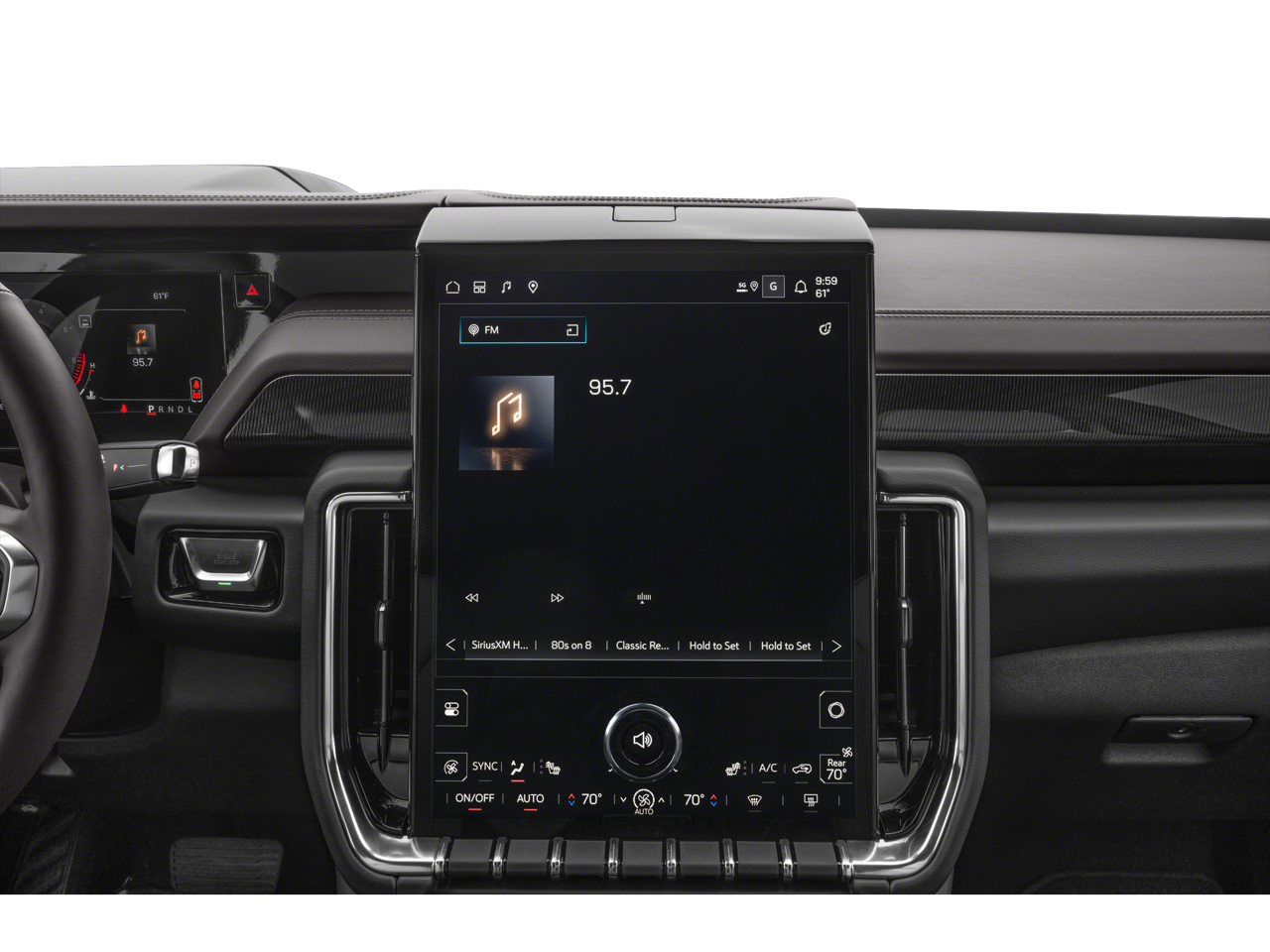 - Audio System, 16.8" diagonal Premium GMC Infotainment System with high contrast display and local backlight dimming, with Google built-in compatibility, including navigation capability, color touch-screen, multi-touch display, connected apps, personalized profiles for each driver's settings, and Natural Voice Recognition