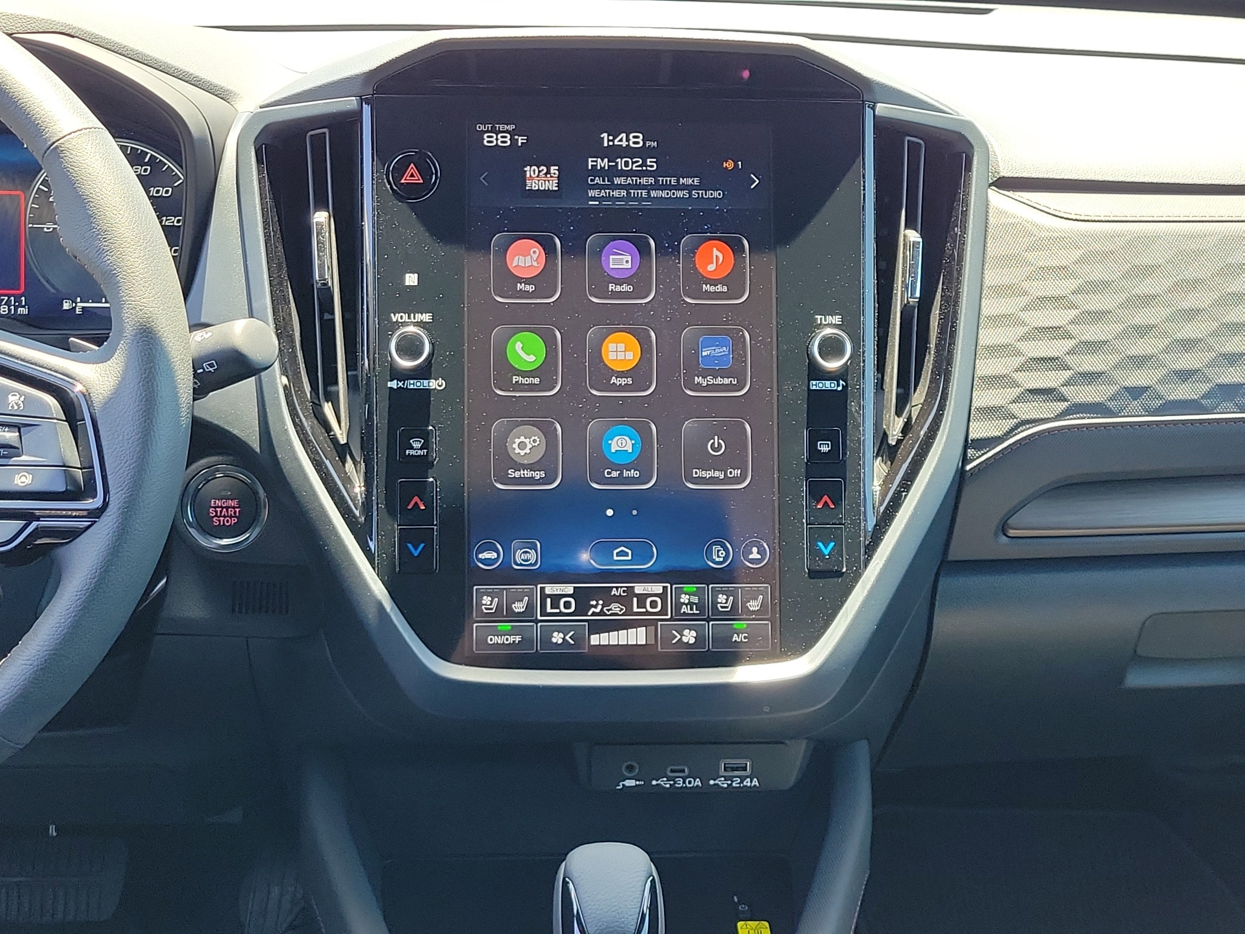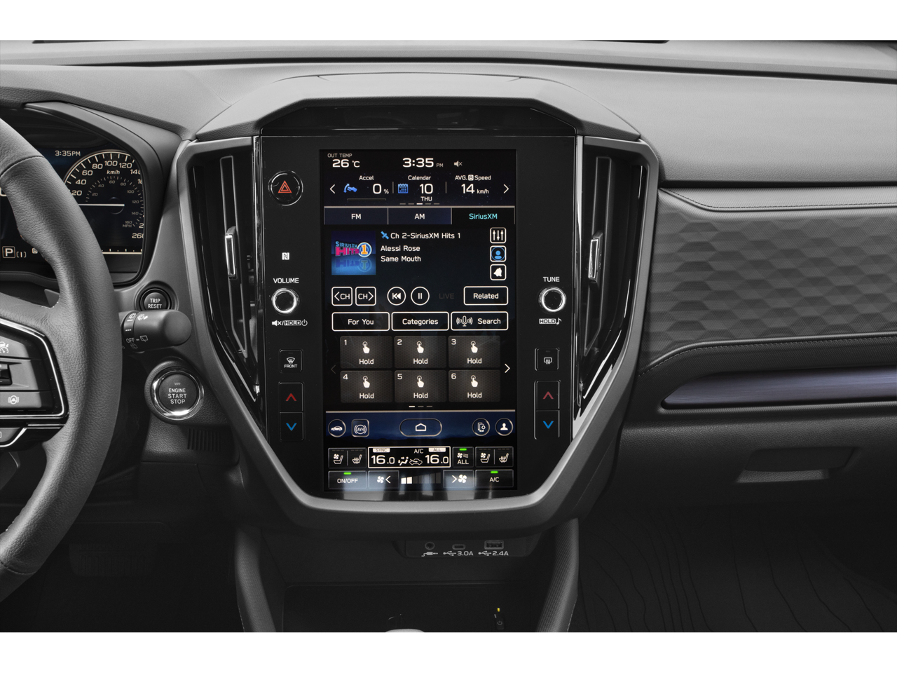 - Radio: Subaru 11.6" Multimedia Navigation System -inc: valet mode, integrated center information display, AM/FM stereo HD Radio, multi-touch gesture high resolution display screen, voice activated controls, voice activated navigation, Bluetooth® audio streaming and hands-free phone connectivity w/SMS text messaging connectivity (refer to subaru.com for cell phone compatibility), TomTom navigation software w/What3Words, iPod control capability, SiriusXM w/360L (4 months free trial/subscription required after), SiriusXM Travel Link (3 years free trial/subscription required after), SiriusXM Live Traffic (1 year free trial/subscription required after), smartphone integration for Android Auto and Apple CarPlay w/full screen view and wireless connection, USB and Over The Air (OTA) audio system update, TomTom navigation system update w/USB/Map Over The Air (MOTA) (3 years free map updates), steering wheel control switches for audio and Bluetooth®, harman/kardon speaker system w/11 speakers and 576 watt equivalent maximum output amplifier, 3.5mm auxiliary input jack and roof mounted audio and satellite antenna