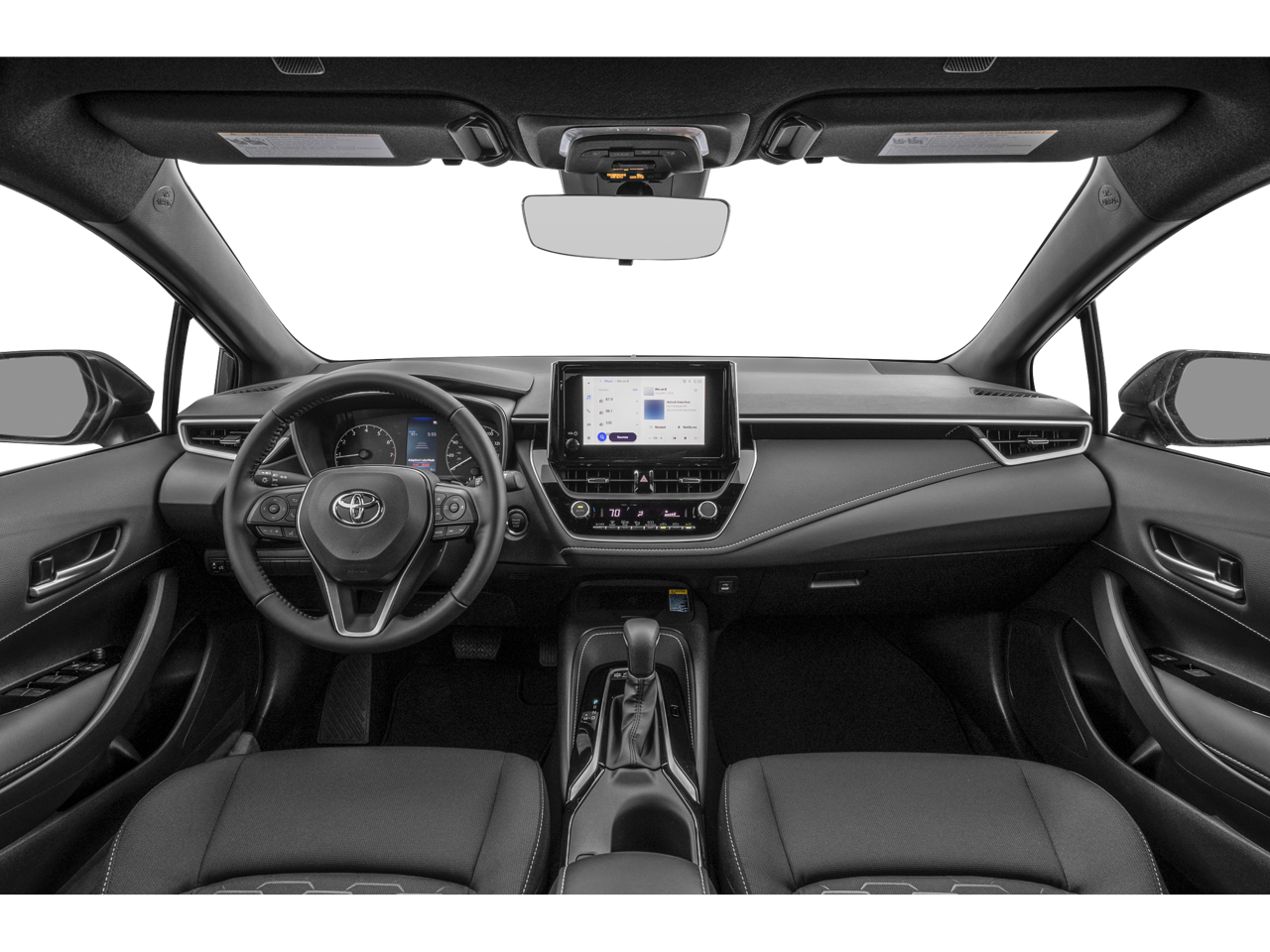 This Vehicle is nicely equipped with the following features: 4-Wheel Disc Brakes, 6 Speakers, ABS brakes, Air Conditioning, Alloy wheels, AM/FM radio: SiriusXM, Auto High-beam Headlights, Automatic temperature control, Brake assist, Bumpers: body-color, Compass, Delay-off headlights, Driver door bin, Driver vanity mirror, Dual front impact airbags, Dual front side impact airbags, Electronic Stability Control, Emergency communication system: Safety Connect (up to 10-year trial subscription), Exterior Parking Camera Rear, Fabric Seat Trim, Four wheel independent suspension, Front anti-roll bar, Front Bucket Seats, Front Center Armrest, Front reading lights, Heated door mirrors, Illuminated entry, Knee airbag, Leather Shift Knob, Leather steering wheel, Low tire pressure warning, Occupant sensing airbag, Outside temperature display, Overhead airbag, Overhead console, Panic alarm, Passenger door bin, Passenger vanity mirror, Power door mirrors, Power steering, Power windows, Radio data system, Radio: 8 Toyota Audio Multimedia, Rear anti-roll bar, Rear seat center armrest, Rear side impact airbag, Rear window defroster, Rear window wiper, Remote keyless entry, Security system, Speed control, Speed-sensing steering, Split folding rear seat, Spoiler, Sport Front Seats, Steering wheel mounted audio controls, Tachometer, Telescoping steering wheel, Tilt steering wheel, Traction control, Trip computer, Turn signal indicator mirrors, and Variably intermittent wipers.
